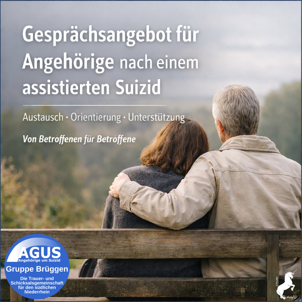 Aufgrund mehrerer Anfragen bieten wir bei AGUS Brüggen ab sofort im Rahmen unserer Sprechstunde auch persönliche Gespräche für Angehörige nach einem assistierten Suizid an.